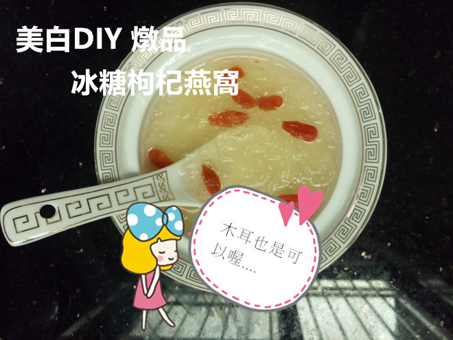 材料: 燕窩(也可以用木耳).花旗蔘.冰糖. 枸杞或紅棗