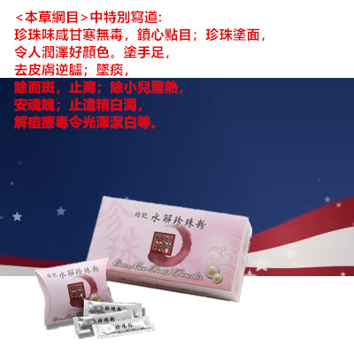 珍珠粉有大量的胺基酸.鈣質.更有 年長者較缺乏的鋅 (對賀爾蒙有平衡的協調作用)